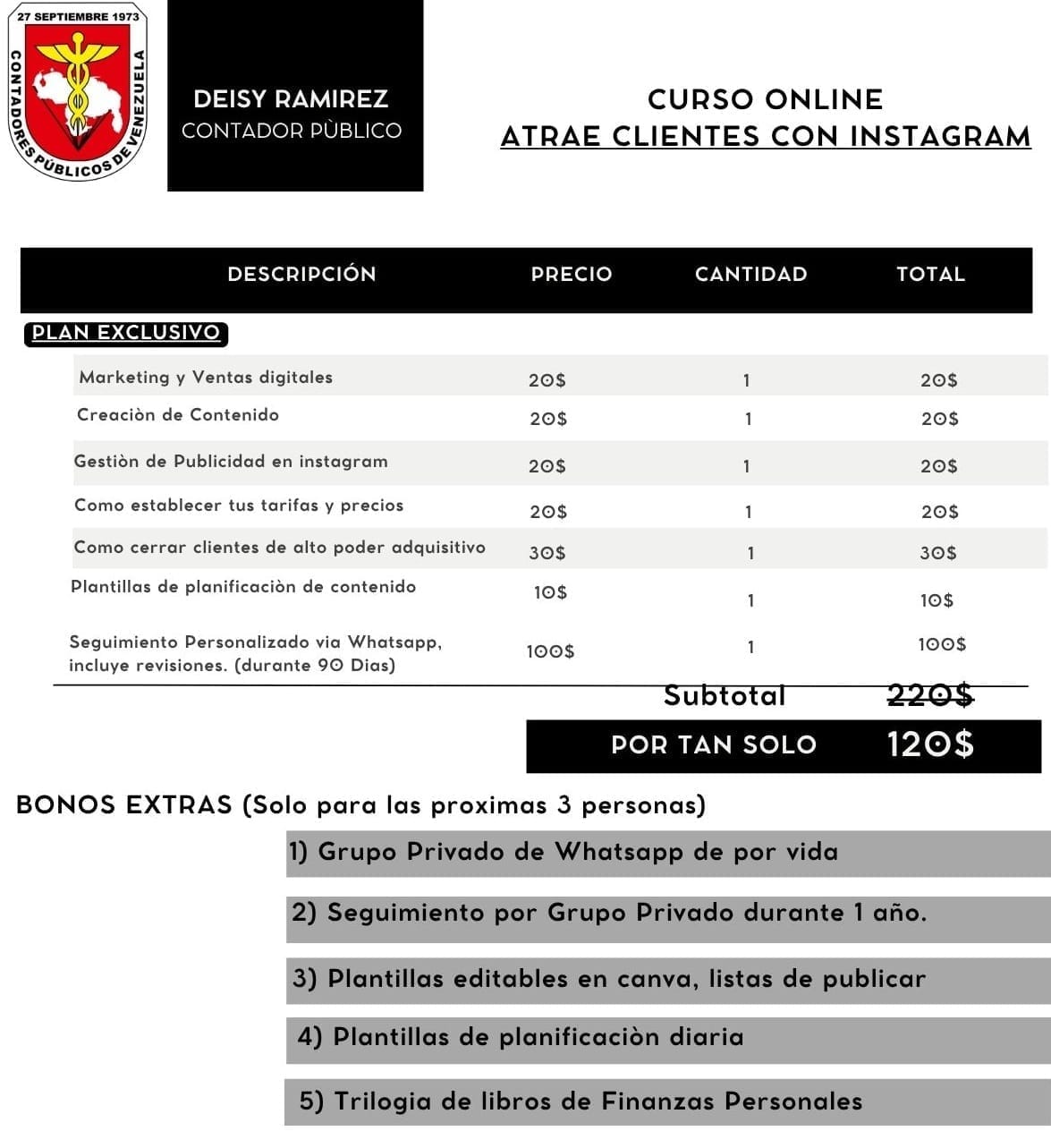 Te garantizo que amarás este Curso donde obtendrás todo lo que necesitas para ATRAER CLIENTES POR INSTAGRAM y convertirte en eso que estas destinado a ser, LIBRE con tu profesiòn.